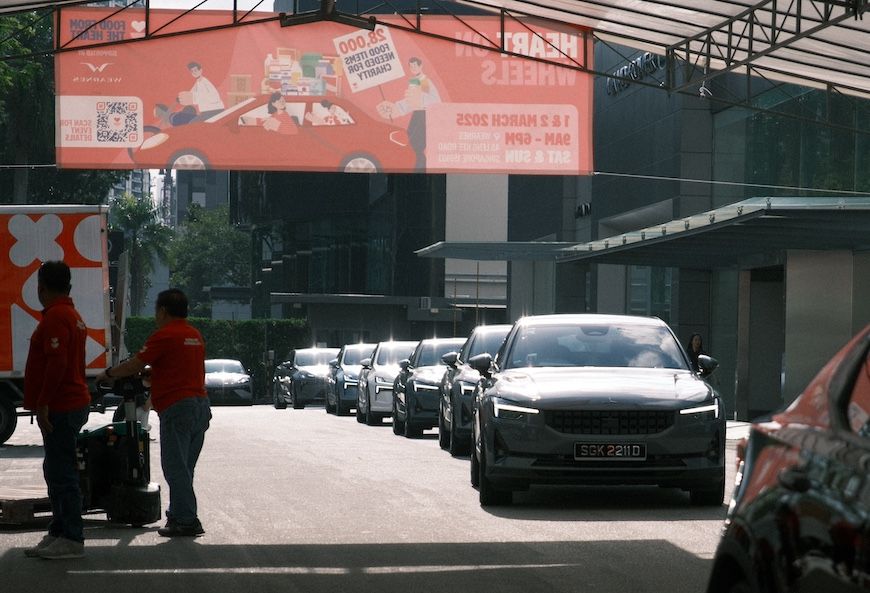 While 25 Volvo cars drove thru to drop off their donations, 100 cars set off to deliver food packs to beneficiaries