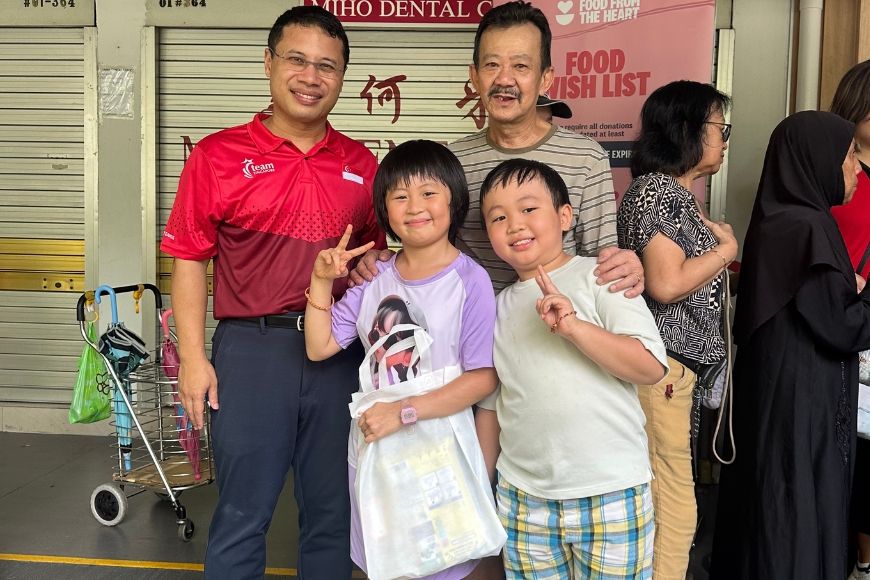 Minister Desmond Lee, MP for West Coast-Jurong West GRC, with our beneficiaries who received a goodie bag from PSC Corporation