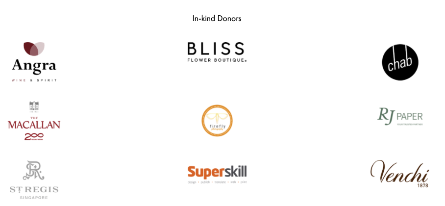 But but not least, we are grateful towards these In-Kind Donors who contributed towards the evening's success: