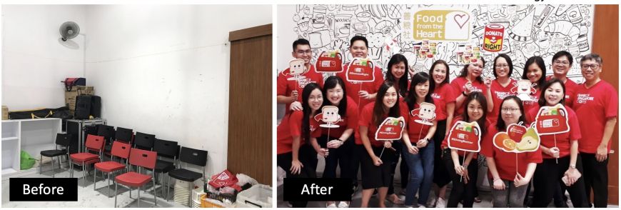 The packing room has been made more lively thanks to the creativity of local artist and doodler Melissa Tan, who led a group of staff and volunteers in decorating the previously blank wall with food items commonly found in our handouts to our beneficiaries. The wall is now frequently used as a backdrop to volunteer photo-taking!