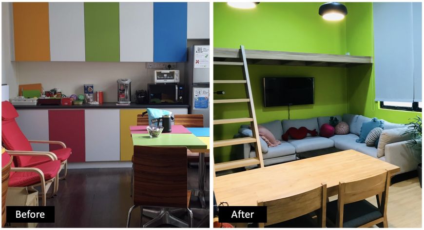 Anyone who has volunteered at the Food from the Heart warehouse and taken a peek at our office would know that we are very short on space. Utilising the Care & Share Matching Grant given by NCSS to charities for capacity building purposes, Food from the Heart now has an improved work and rest area in the form of our renovated pantry. Nicknamed The Loft, the new pantry features a second deck to maximise the high ceiling of our office unit and create more much-needed space. The space has been made more conducive for meetings with a larger table and screen, and more comfortable for a quick respite.